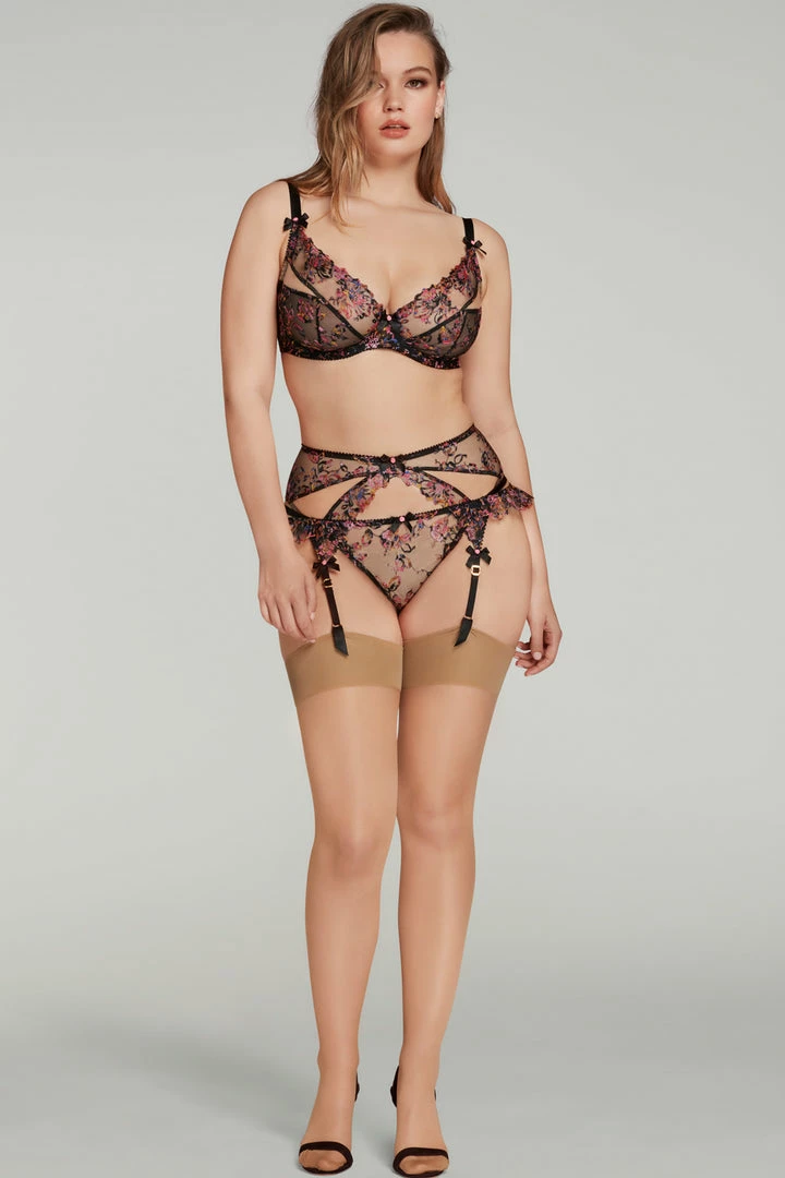 Composition: Lace (100% Polyester), Thin Mesh (100% Polyamide), Thick Mesh (74% Polyamide, 26% Elastane).