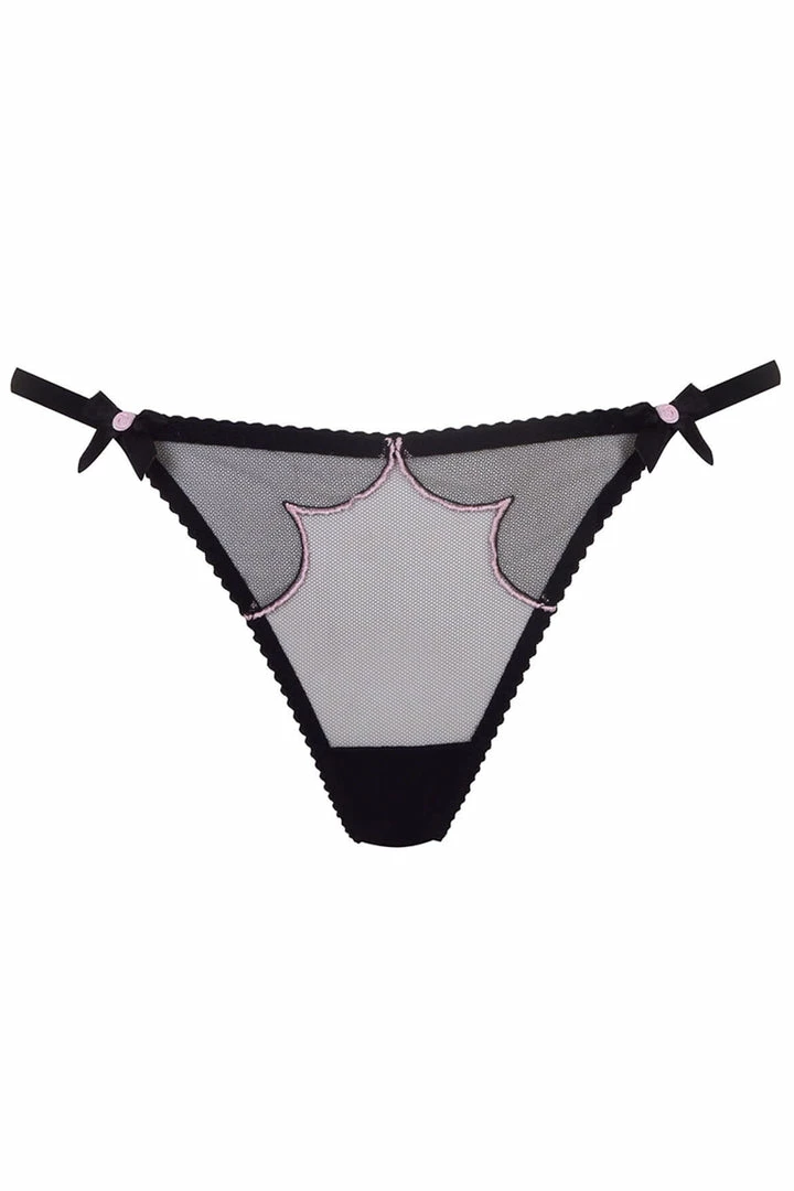 Effortlessly elegant and sexy discover the Lorna black thong by Agent Provocateur. This classic thong is cut from sheer tulle with Austrian embroidery and French seam detailing for a girlish and sexy effect. Wear yours with the matching Underwired Bra and Suspender Belt for a romantic and sophisticated appeal.