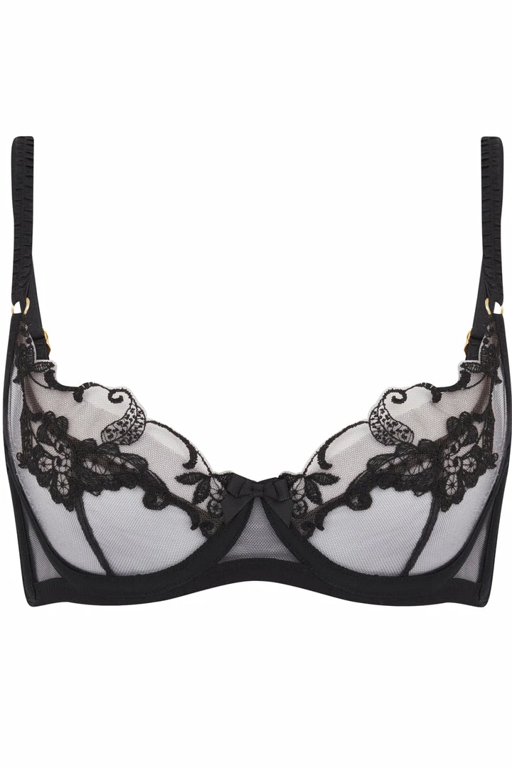 Beautifully balancing romance and rebellion, the Mirabelle Underwired Bra is impossible to resist. The cups are made from soft sheer tulle with tattoo-style embroidered motifs and a satin bow adorns the centre. Pair it with the Mirabelle brief for everyday elegance, or the Mirabelle ouvert in the boudoir.