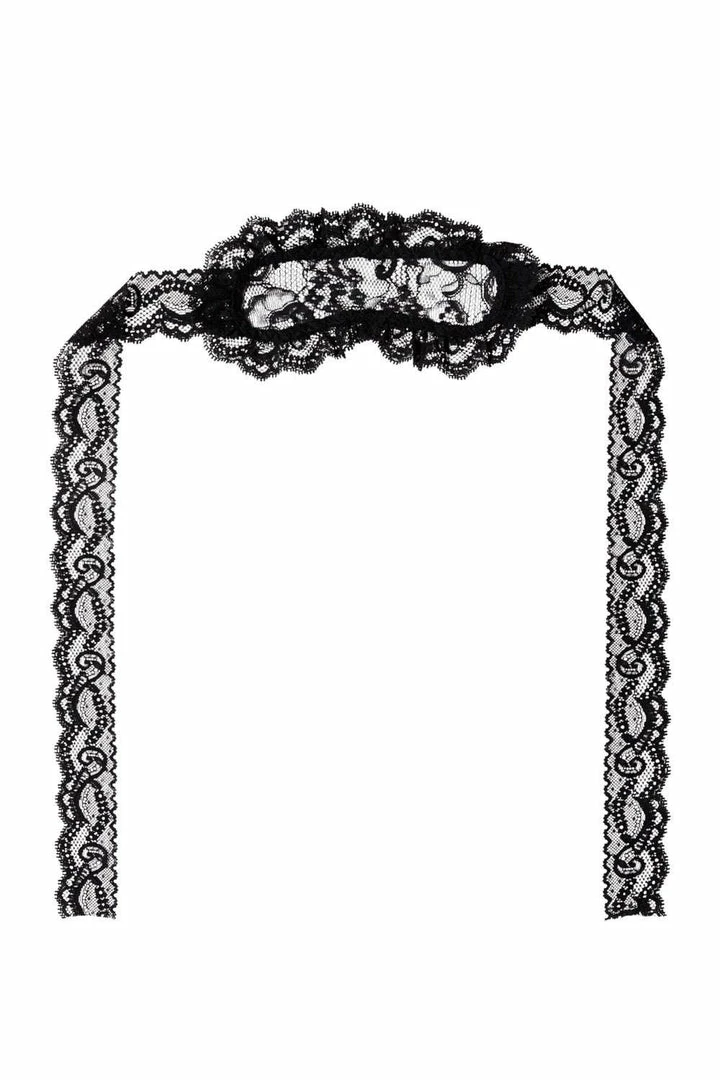 Lace accessories from Aubade. This romantic two-piece set features two fingerless gloves with a lace strap to tie or untie as the fancy takes you and a transparent lace mask edged with a fine braid to tie it over your eyes. Style with the Boîte à Désir Trikini for a night of seduction.