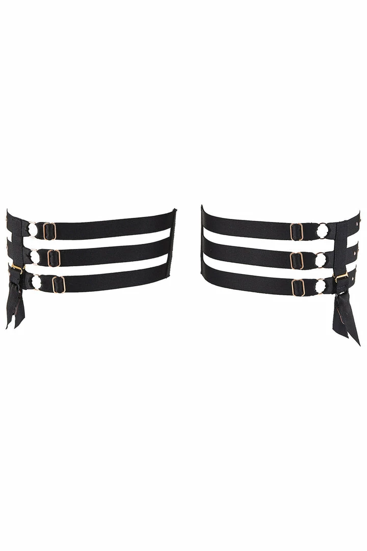 A must-have piece to add to your lingerie accessory collection, the garters from the Rencontre Anonyme collection are erotic as well as chic. Adorned with studs and gold rings they will add a eye-catching and sexy touch to your look.