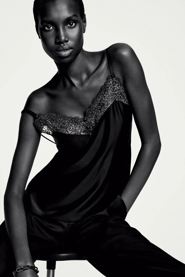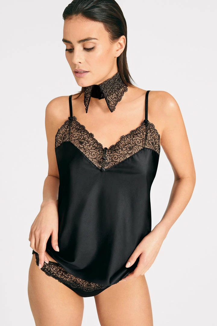 The Karl Lagerfeld x Aubade line is complemented by a stunning, exceptionally elegant Camisole. Made entirely from Clean Cut satin knit with elegant embroidery on the neckline, it is reminiscent of the designer’s iconic tuxedo with its satin buttons at the centre.