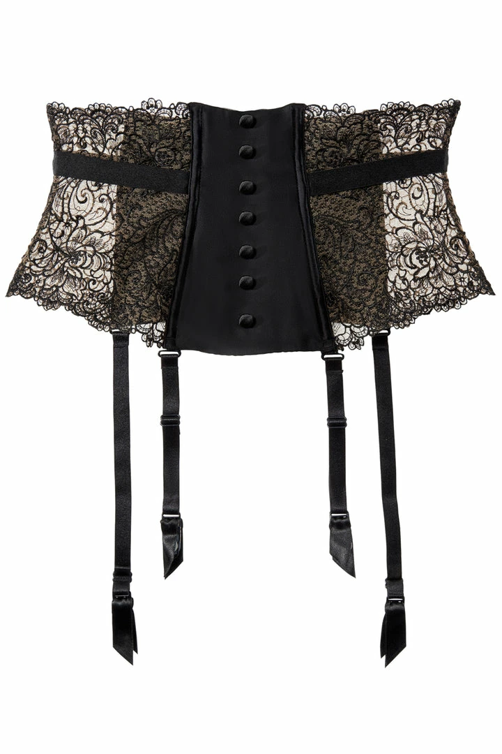 The unbelievably chic Karl Lagerfeld x Aubade Waistcincher highlights the feminine figure for a bold, refined look. Wider than a classic suspender belt, the Miss Karl waist cincher defines and streamlines the figure for a breathtaking tiny waist. Freely inspired by corsetry and the famous designer’s work, it boasts sensual guipure embroidery trimmed with satin buttons for a Hot Couture effect. Pair yours with the matching piece from the Miss Karl collection.