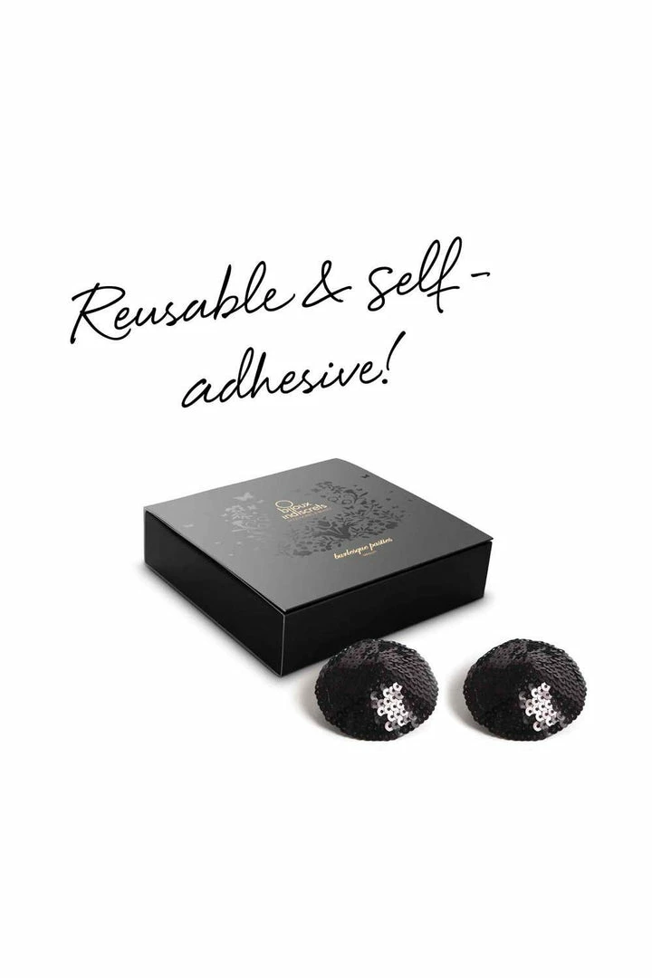 Nipple pasties from Bijoux Indiscrets. Shiny sequins to match the spirit of the moment. The Burlesque collection gives plenty of reasons (for seducing)… If you enjoy feeling sexy and attractive, you will love the Burlesque pasties. Wear them together with your favourite lingerie and you will desire and be desired… Va Va Voom!