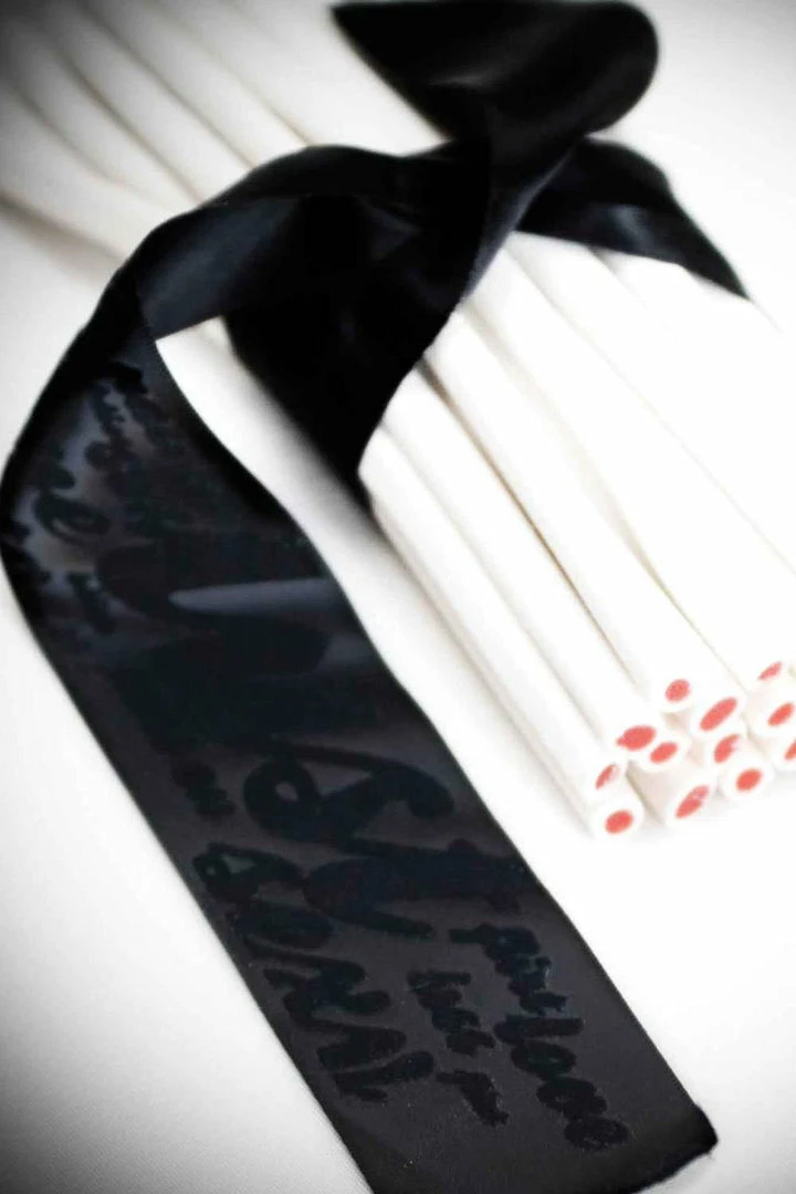 - Easy-to-use ribbon restraints for simple beginner’s bondage play.