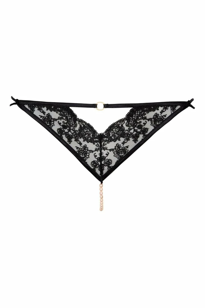 Bracli is the quintessential underwear for women and makes for the perfect gift. A unique single string of genuine Pearls of Manacor will make an exciting addition to any lingerie drawer for those special nights. The Limited edition Bella pearl thong luxuriously crafted from embroidery, tulle, elastic straps and gold components.