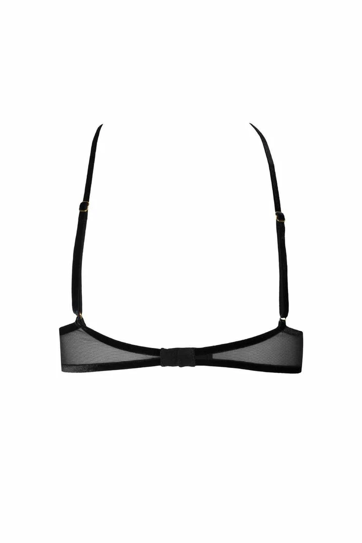 A stunner of a triangle bra that will leave you in awe. The Bracli Kyoto Bra is a The Gorgeous design of sheer mesh enriched with velvet straps and delicate Leavers lace. Quite the impressive showstopper for everyday wear or for a hot and steamy night in.