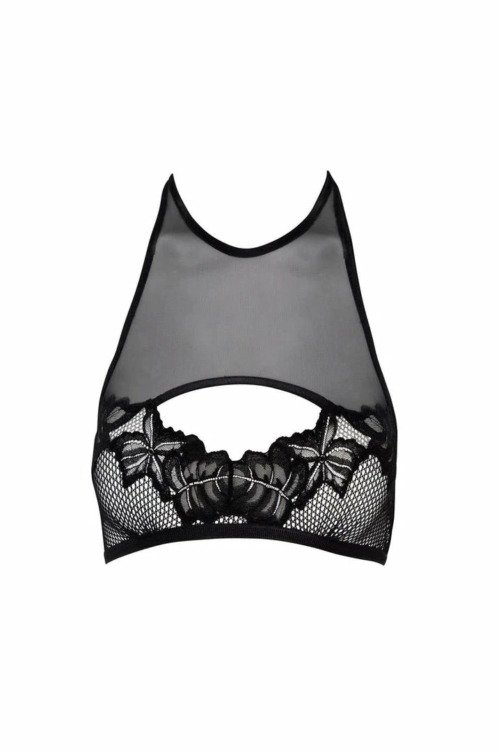 Sheer lingerie by Bracli. A stunner of a bra that will leave you in awe. Show off your best assets whether its day or night in the London Halter Bra. The stunning combination of Leavers lace and sheer tulle oozes modern glamour. Complete the look with the matching thong or high waist brief.
