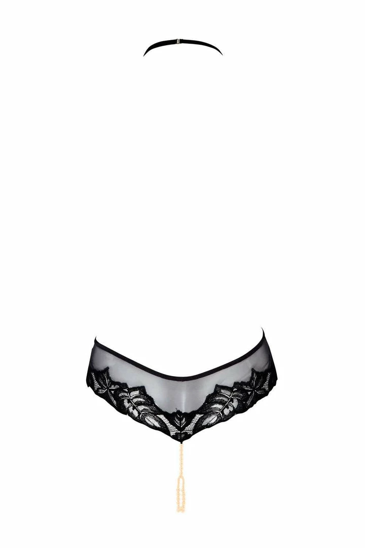 Sheer lingerie by Bracli. Feel playful & provocative when you wear the stunning London Playsuit. Featuring sheer mesh and delicate Leavers lace that hugs the female silhouette beautifully while a double string of pearls stimulates the most sensitive parts of the woman. Style it alone with nipple covers or combine it with the matching bra for a showstopping look.