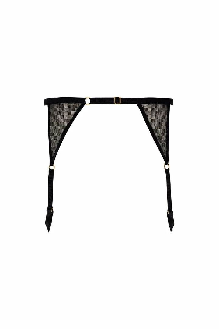 Black lingerie by Bracli. This minimalist suspender belt from the London collection will lend you to desire, blending stunning tulle, striking elasticated straps and gold components for a touch of glamour. The perfect finishing touch to any chic lingerie set. Style with black stockings and the matching thong for a boudoir set you’ll treasure forever.