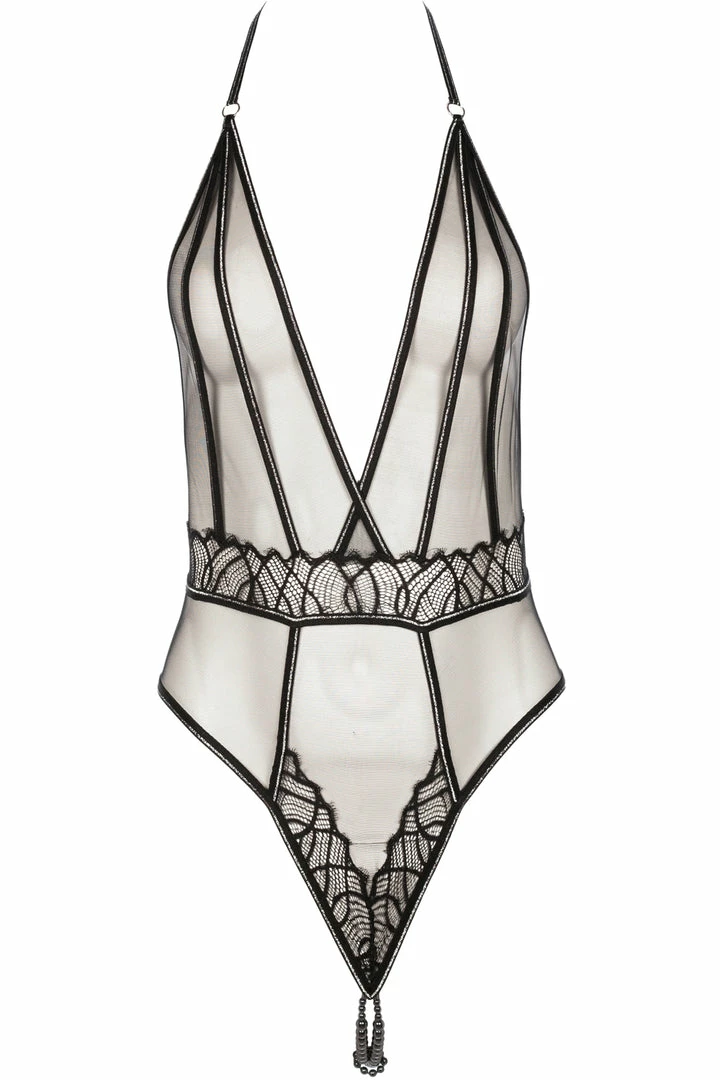 Indulge in both elegance and eroticism with this black bodysuit. Made by renowned Spanish erotic lingerie brand Bracli, it features a double string of premium black Manacor pearls in place of a gusset, for a sensationally seductive look that stimulates on both an imaginative and physical level. The soft mesh and elastic silver lurex straps perfectly contour your body. It’s so good, you won’t want to take it off.