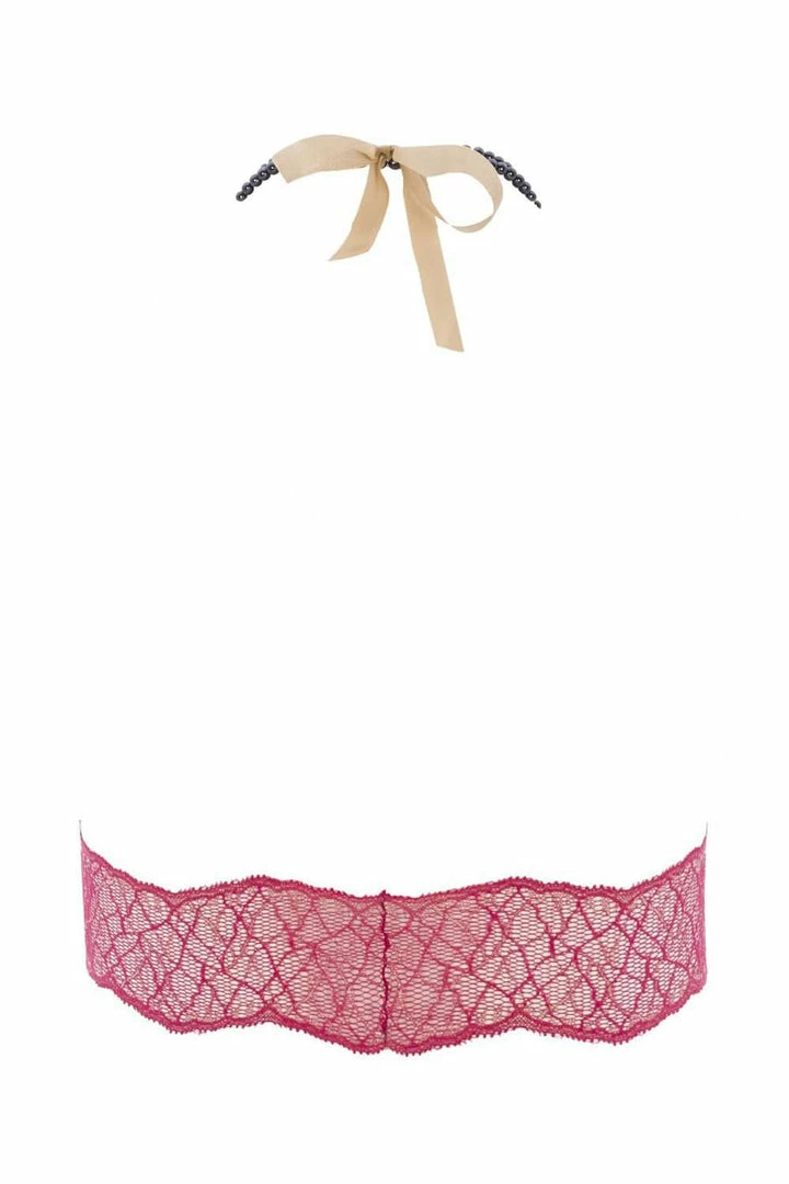 Spice up the night in Bracli’s Sydney collection. The Sydney Bra combines lingerie with jewellery for a glamorous look that’s guaranteed to tantalize and tease. Cut from red Italian lace with golden lurex highlights, this bra features a double necklace, made from black Manacor pearls. Pair yours with one of the matching Sydney thongs for a seductive statement on special occasions.