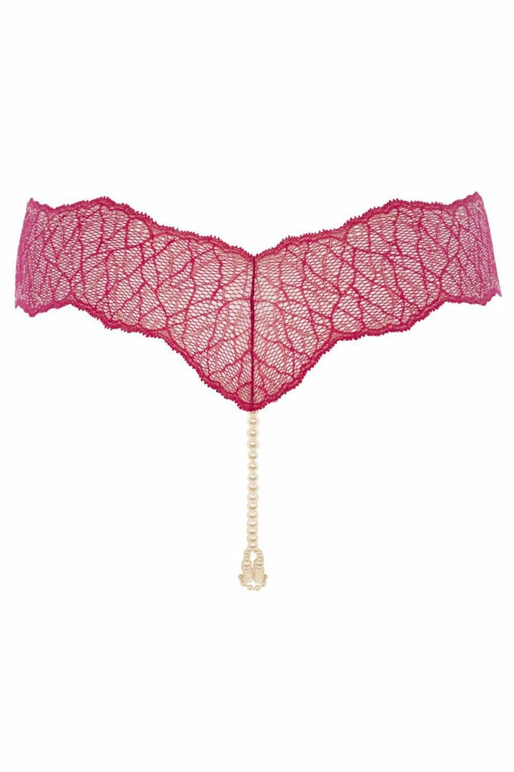 Bracli is the perfect gift, it combines elegance and sensuality, luxury and finesse. Cut from fine red Italian lace with gold lurex highlights the Sydney Double Thong perfectly hugs your hips. It’s unique double strap of cream pearls provide a double function: stimulation for women and stimulation in a sexual relationship. The ring of pearls attached can be moved until it touches the clitoris so that it is caressed and, during penetration, the man will feel extra sensations through the gap formed by the two strands of pearls. Style yours with one the matching Sydney bras and glove for a seductive statement.