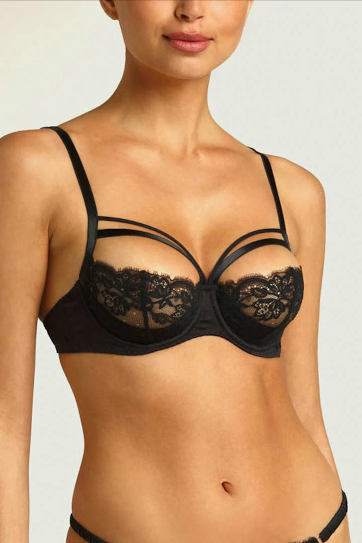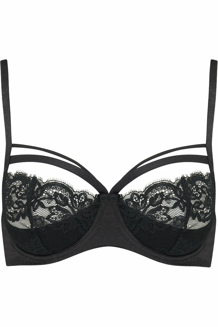 Ignite romance in the Seraphine Half Cup Bra by Coco de Mer. The structured underbust and shaping underwiring offers full support, while corded French Leaver’s lace and directional apex straps accentuate curves in luxurious detail. This impeccable combination of black silk and French lace is ageless, timeless and universally sensual. Pair yours with the matching Seraphine Brazilian Knickers or G-String for a tempting lingerie set.