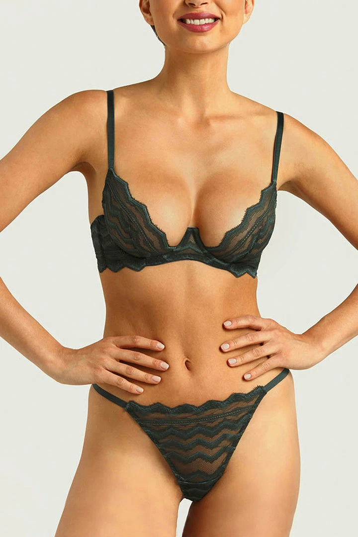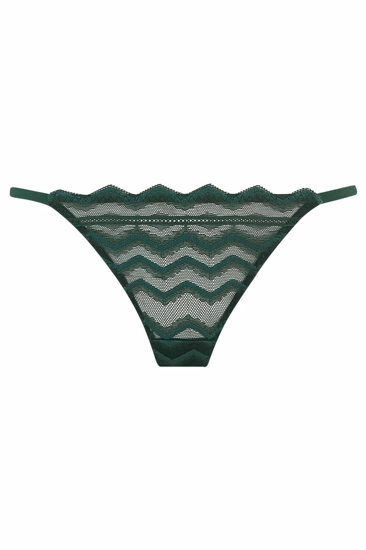 Minimalist in design, maximum in seduction the Margot thong by Coco de Mer features stretch-lace in a striking geometric pattern to accentuates your natural curves. Designed with a sensual G-string cut at the back, its bold lines frame your derrière. Style your’s with the matching Plunge Bra or Slip for a alluring look.