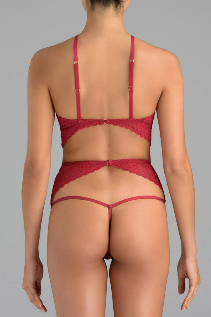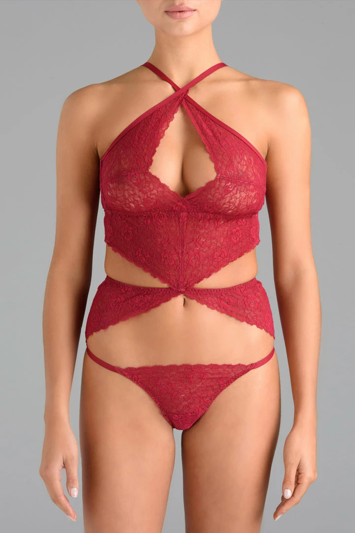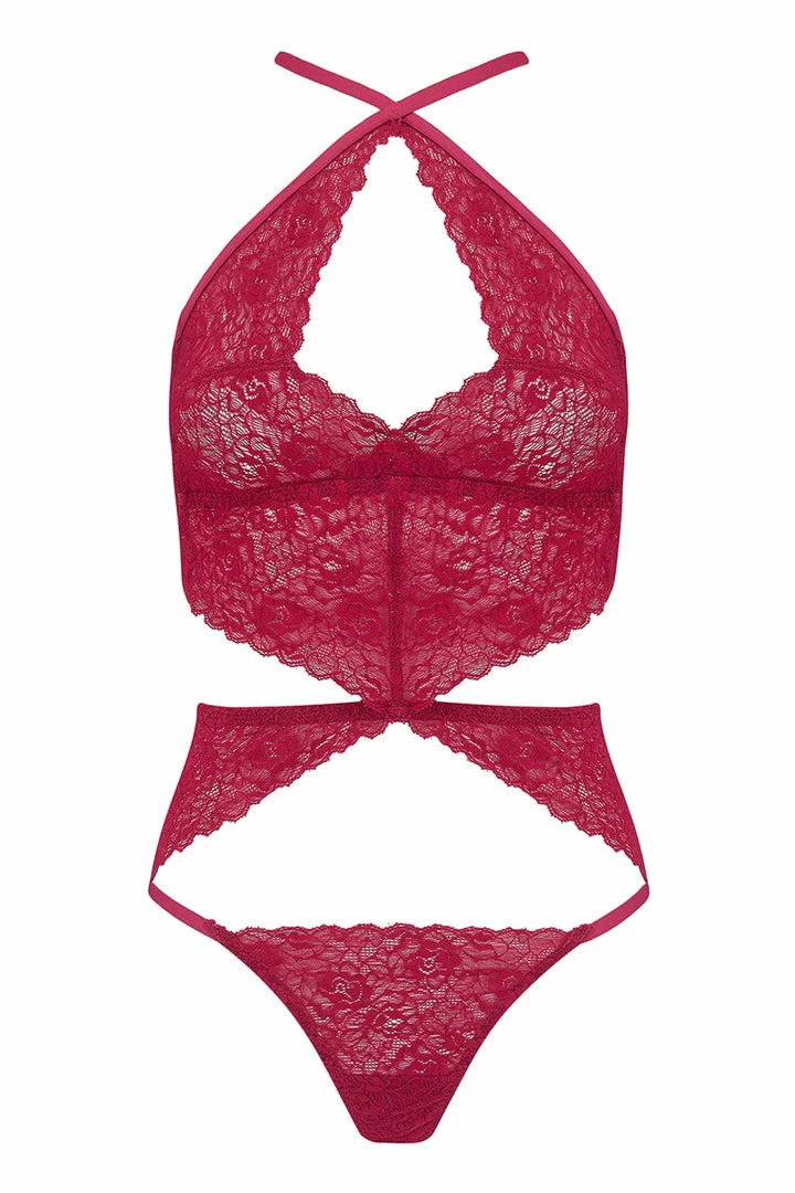 If you love lingerie with many feminine details, this bodysuit will steal your heart. Crafted from bold raspberry lace and finished with rose gold-tone hardware the Marilyn body is designed to emphasize your feminine curves to perfection.