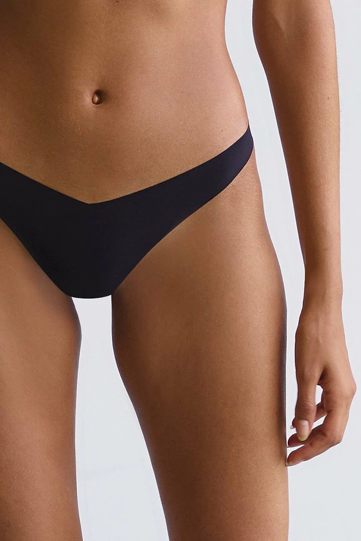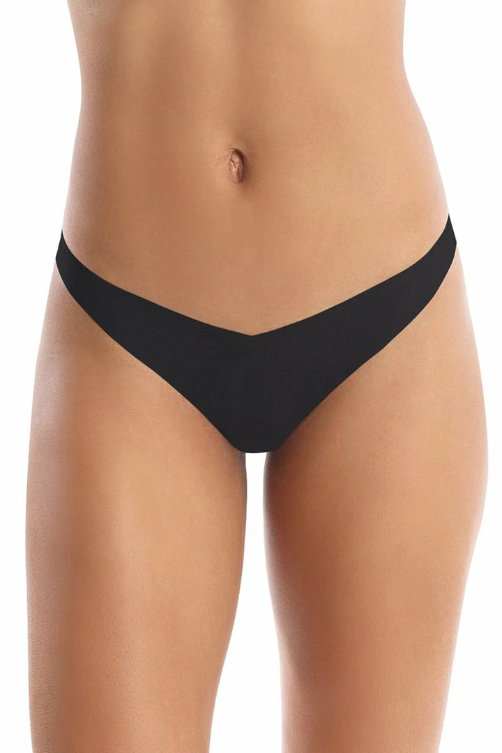 Commando’s tiny thong is a stylist staple! Raw-cut and constructed with luxe microfiber, this fashion thong lays flat against your body and works hard for your wardrobe.