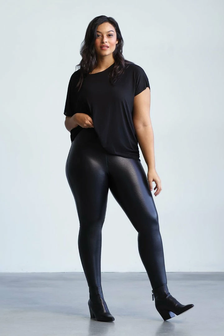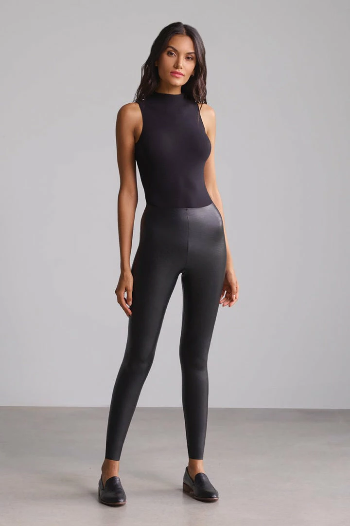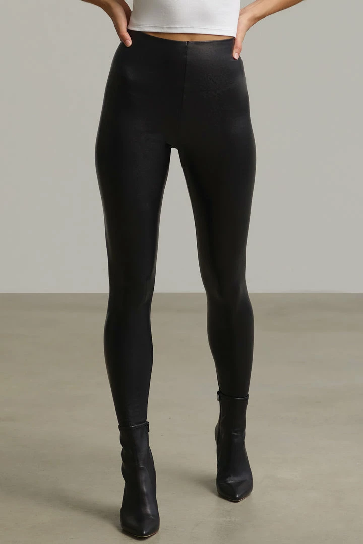 Faux leather leggings featuring commando’s signature internal waistband & firming, smoothing fabric that doesn’t bag or sag. These faux leather leggings are seriously smoothing and provide all-day comfort you can style from day to night.