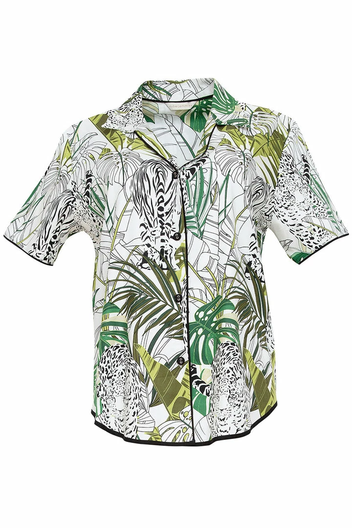 • Pyjama top in leopard and palm leaf print.