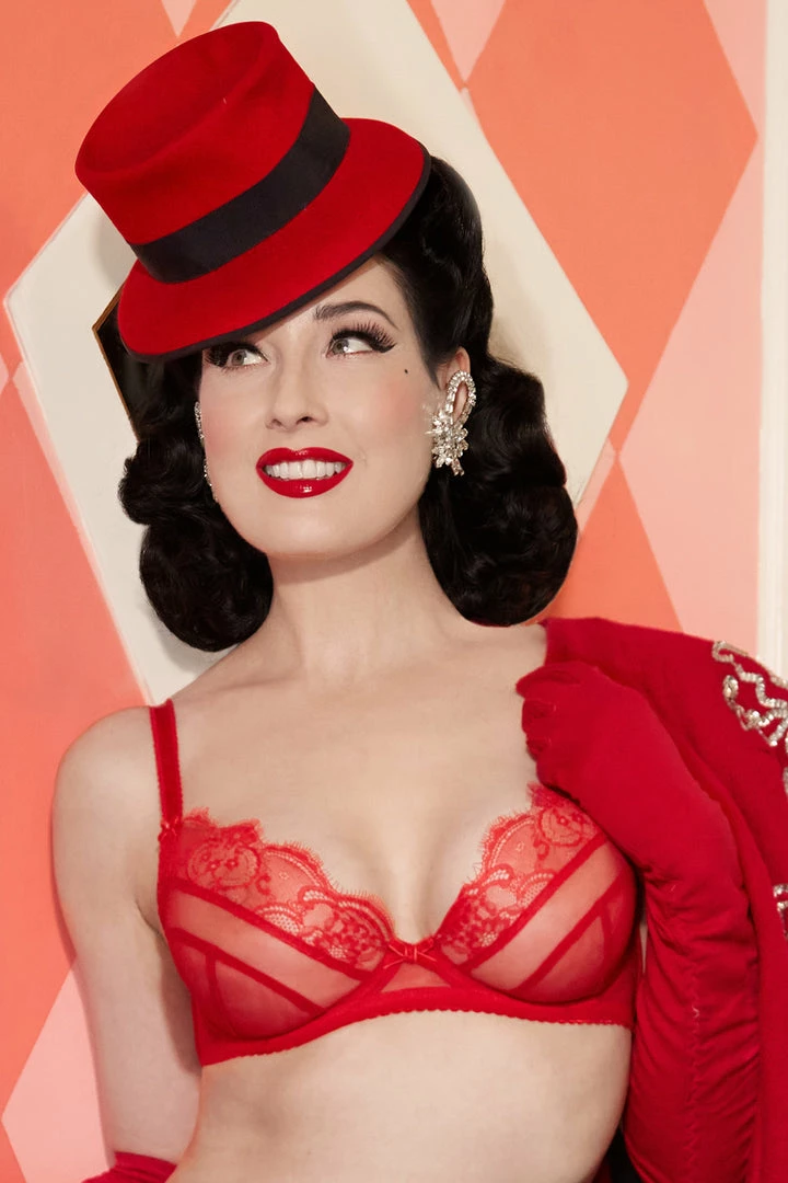 Ignite romance in the Muse Underwired Bra by Dita Von Teese. This stunning underwire bra features delicate eyelash lace for a soft hint of glamour. Extraordinarily refined, it enhances the bust with barely-there tulle for a sensual look. Pair yours with the matching Muse Knickers for a luxury lingerie set.