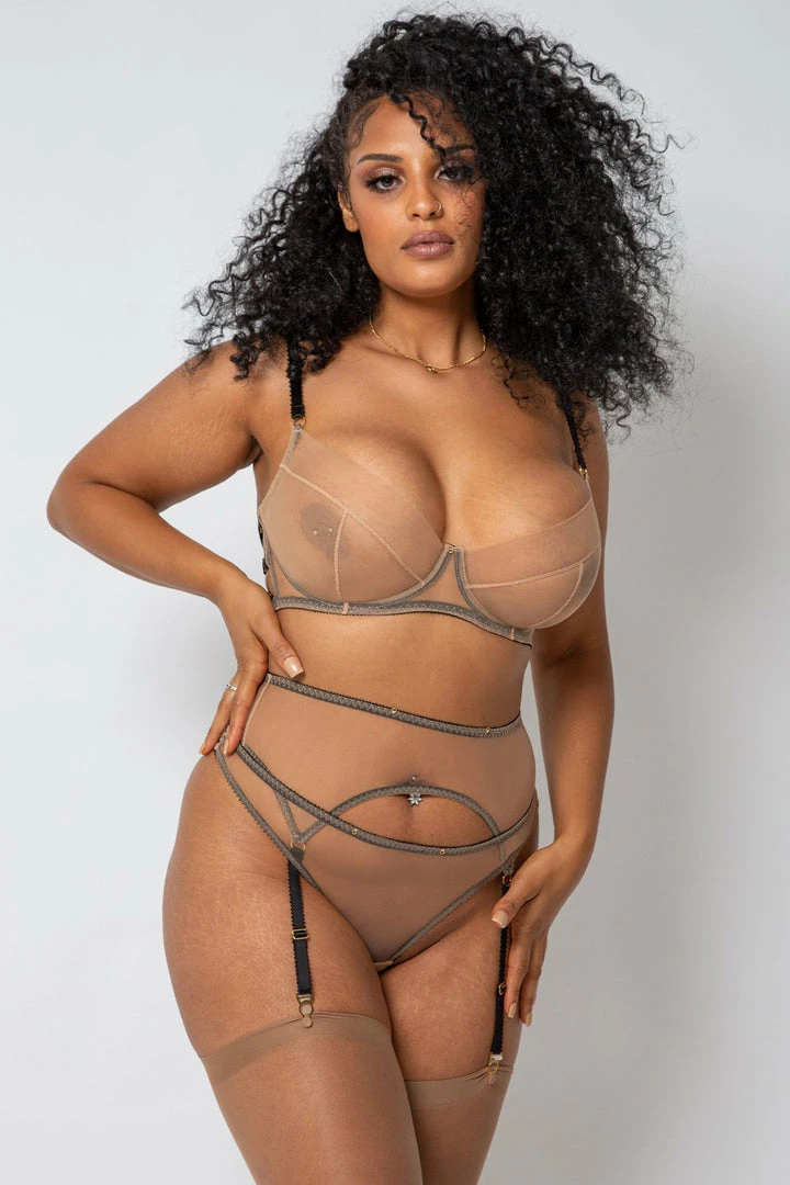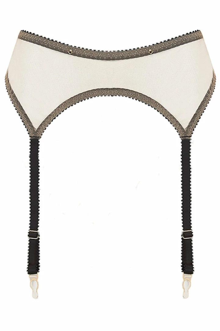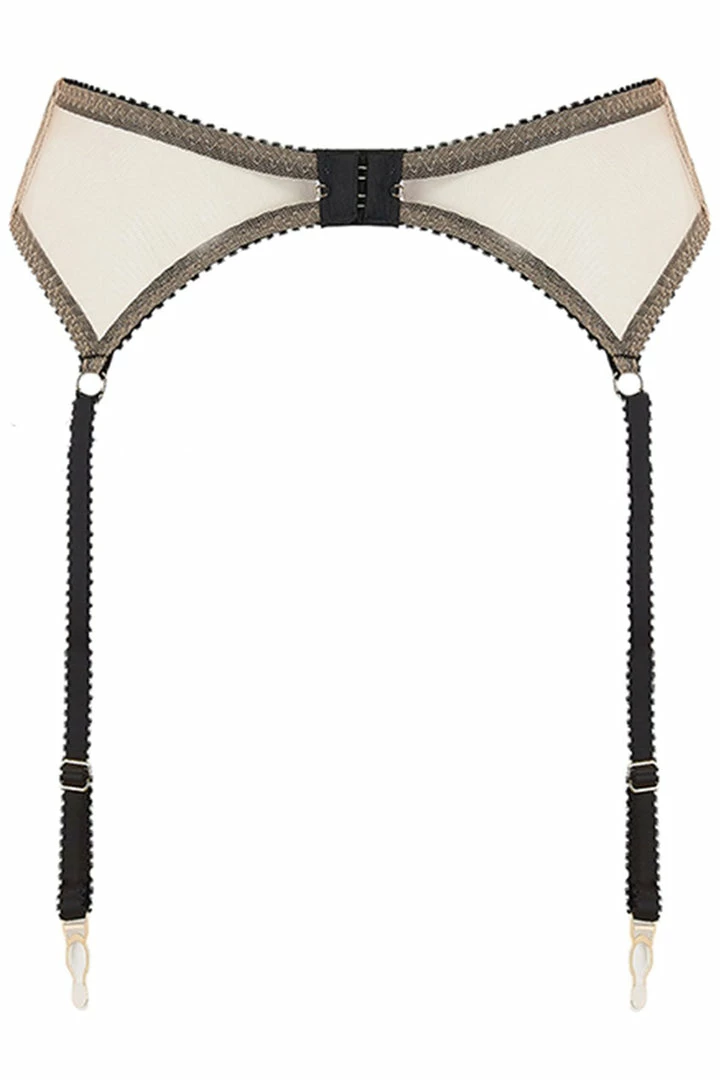This minimalist and chic suspender belt is expertly crafted in the UK from Edge o’ Beyond’s signature tulle and is finished with exposed 24k gold plated hardware. The clean lines are a perfect blank canvas to pair with the luxurious Marinette collection and the unique Joshua hip jewellery!