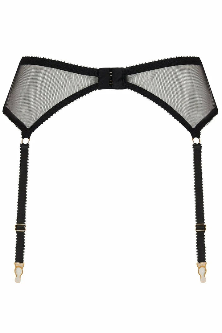 This minimalist and chic suspender belt is expertly crafted in the UK from Edge o’ Beyond’s signature tulle and is finished with exposed 24k gold plated hardware. The clean lines are a perfect blank canvas to pair with the luxurious Marinette collection and the unique Joshua hip jewellery!