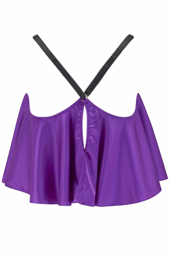 Elevate your loungewear collection with the new luxurious Natasha babydoll from Edge o’ Beyond. Crafted from the softest satin in a regal shade of purple, Natasha is cropped to perfection to elegantly drape over your form. Signature Edge o’ Beyond bondage-inspired strapping crosses over your back, which is fully adjustable to ensure a flattering fit. The 24k gold hardware adds a shimmering luxurious touch. Pair yours with the matching Natasha brief and suspender.
