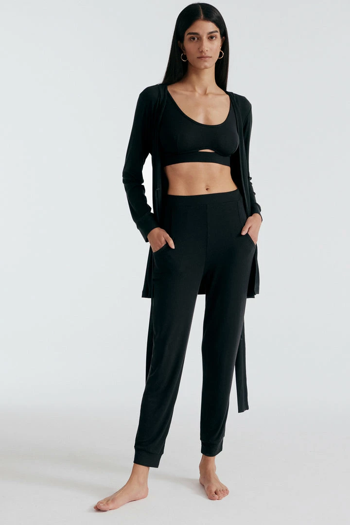 Slip into something comfy with ELSE’s ‘Base Layer’ pants. Crafted from soft modal cotton fabric, these chic pants feature a high waisted elastic waistband and front pockets. Pair them perfectly with the matching Base Layer styles for a luxe loungewear set.