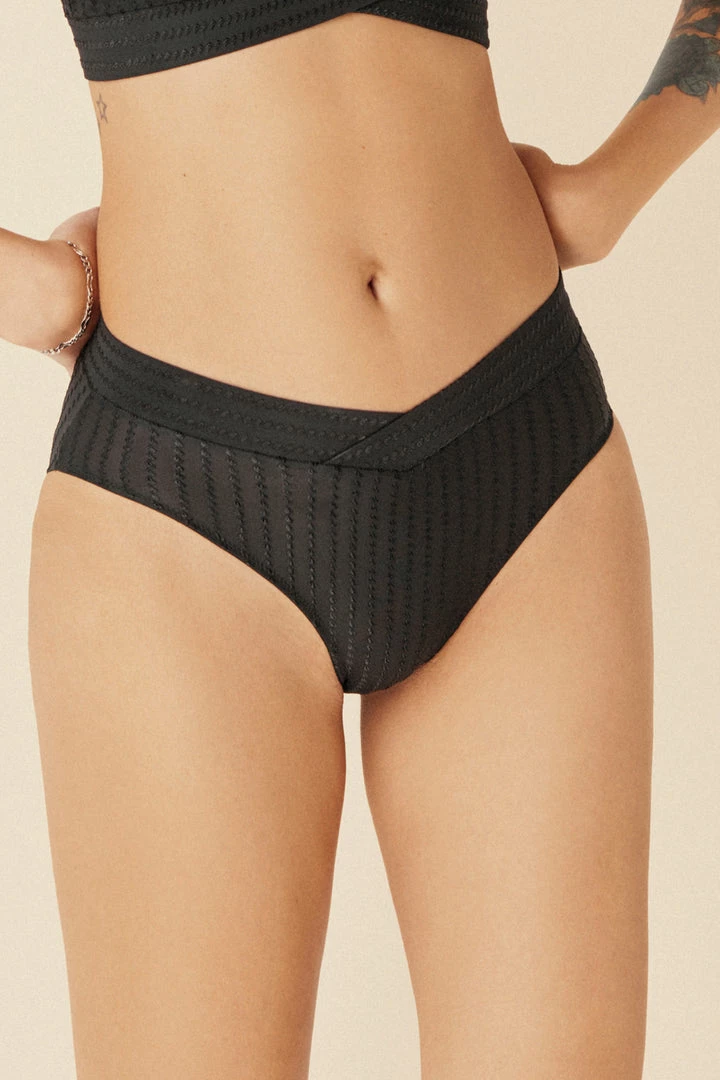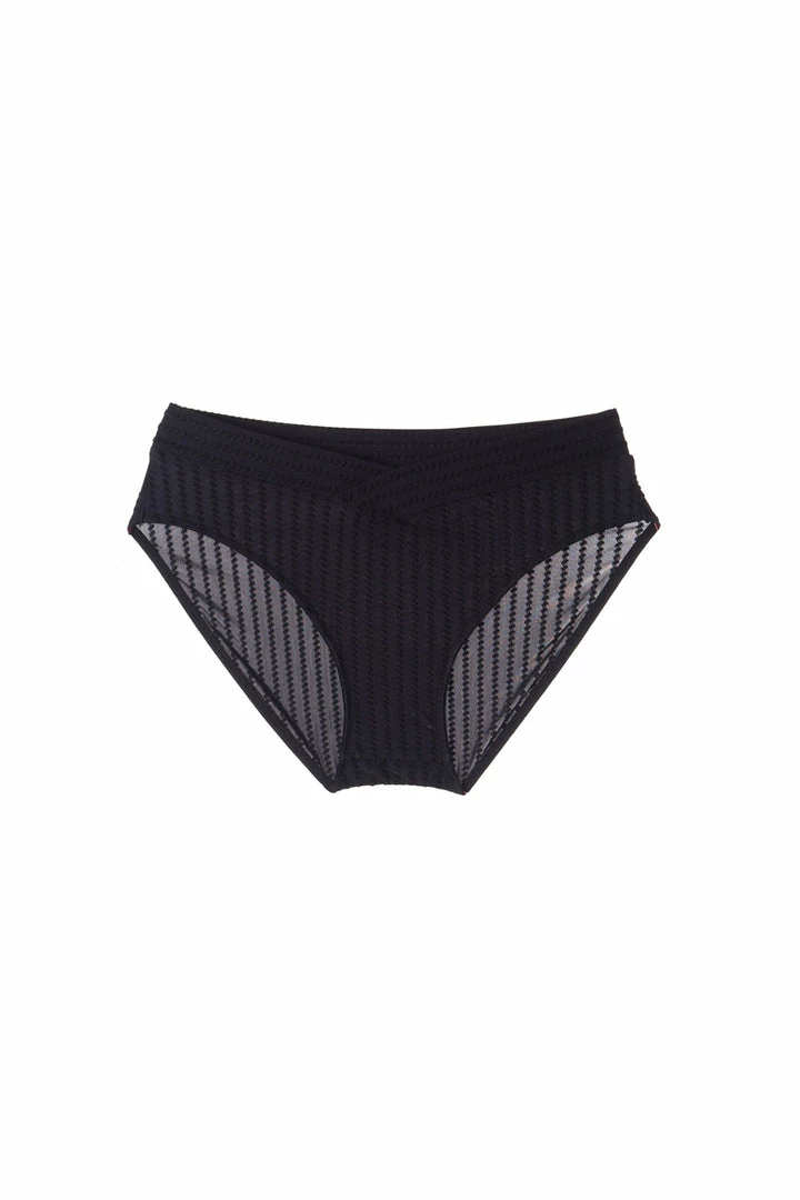 The Else Ziggy high waist brief silhouette is designed to accentuate your natural curves. Totally modern in contrast stripes, with a crossover detail at the waistband.Â