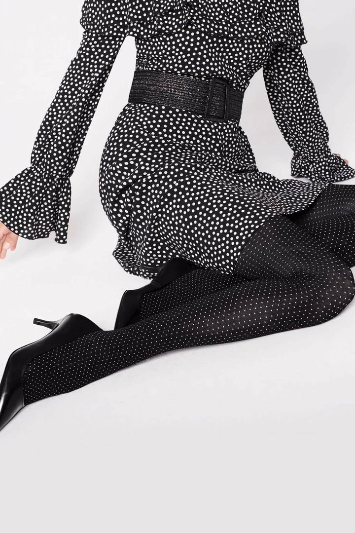 FiORE Buona Sera tights are the one you would choose to wear during most of your autumn and winter evenings. Classic dots pattern is also the best option for delicate dresses in the summer. While cold, you can combine them with an elegant trench or silver coat, extremely trendy in upcoming season, and create your own futuristic outfit.
