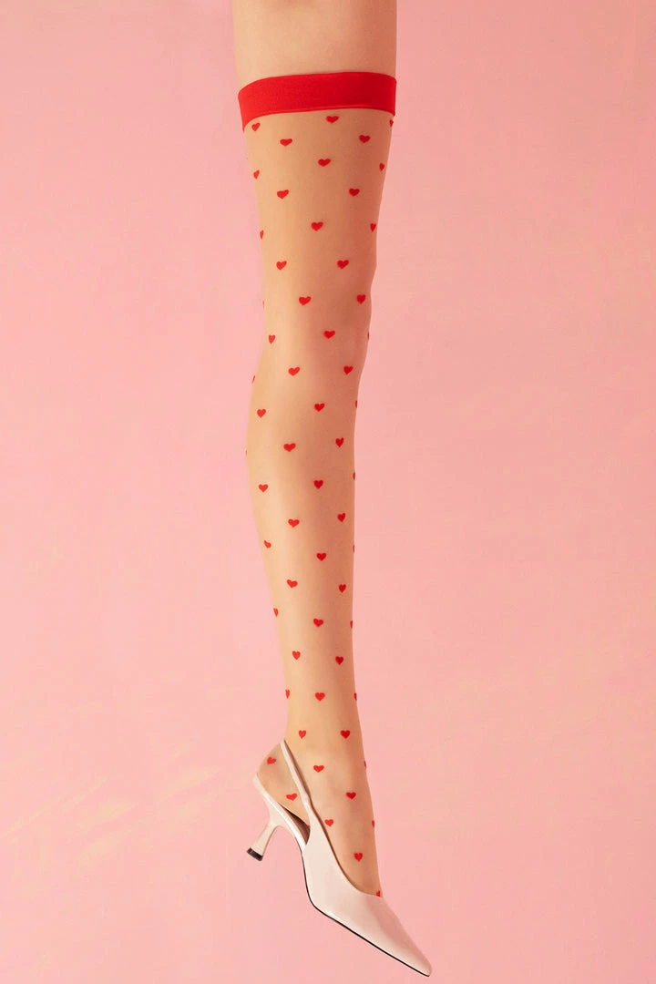 The temperature is rising, pheromones are in the air and our sensual, black stockings with tiny hearts melt hearts like wax. They are both seductive and charming. It’s hard to count these hearts, and we don’t want it to sound cliché, but we think they express much more than 1000 words!