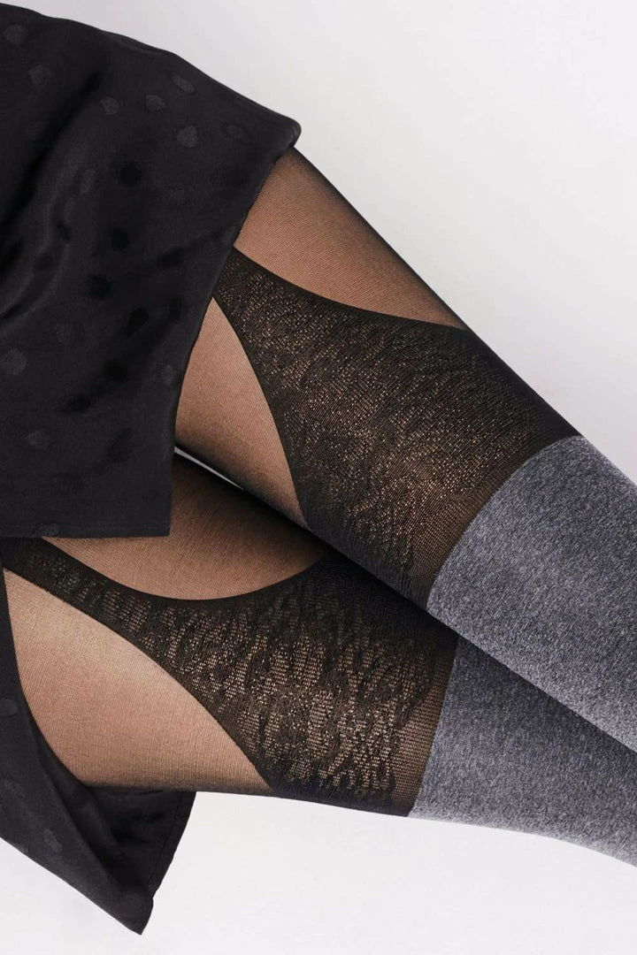 Thanks to the play of great contrast between black and grey, and their alluring illusion of stockings FiORE’s Segnorina tights won’t let you go unnoticed. If you dare to wear a mini skirt, nobody would doubt your Italian character, but while wearing a more subtle outfit, only a mysterious smile can reveal it.