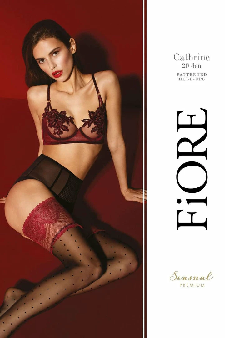 Cherry red meets sensual black in FiORE’s Catherine sheer hold-ups. Polka dots are retro, but always elegant too, combine them with striking lace and the combination is breathtaking. If this is not an ideal combination then what is? Wear them on an everyday basis or uncover them for special occasions, the choice is yours! We loved them styled with luxury lingerie or the perfect little black dress.