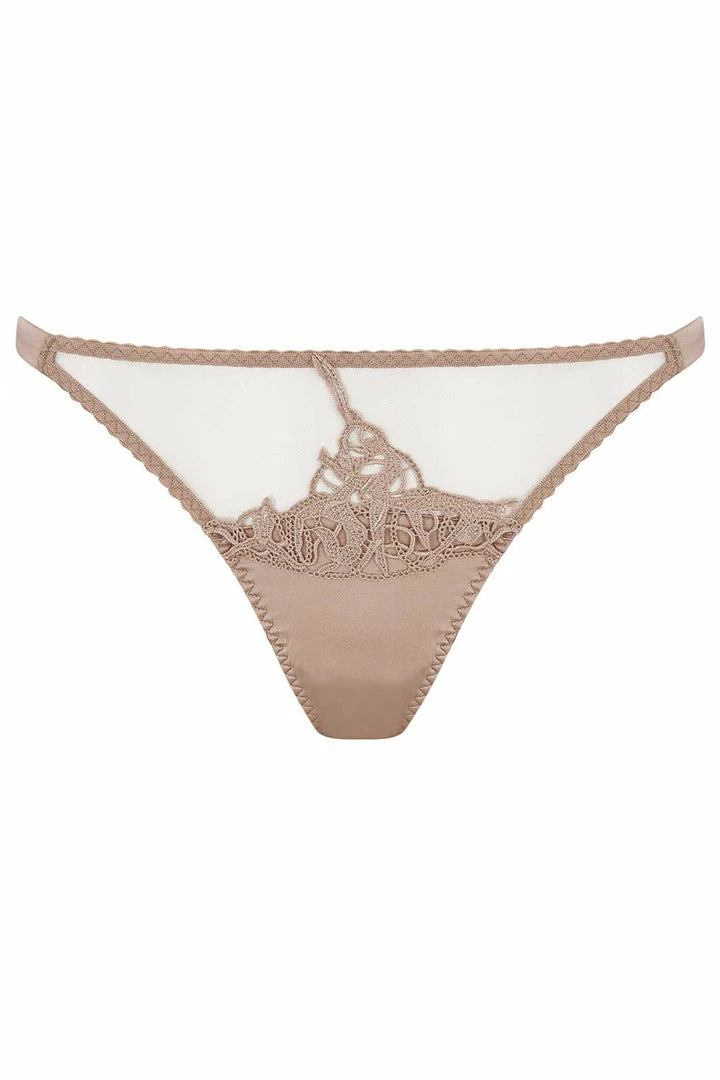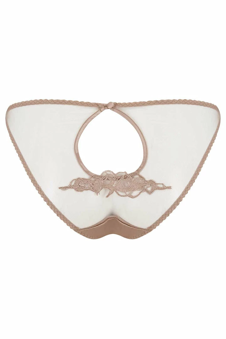 The Marlena ouvert brief by Fleur of England has the same luxurious look as a classic brief, but with added naughtiness. At the front, it features bespoke guipure embroidery inspired by aerial performers against a sheer Italian tulle backdrop, while at the back the same embroidery works at the rear to compliment the peephole back by drawing the eye and adding luxury to this cheeky design. This stunning design is finished with luxurious silk side straps and a small covered button, for a look that is effortlessly luxurious as it is daringly seductive. Pair with the Marlena Boudoir Bra for a look you’ll want to wear time and time again.