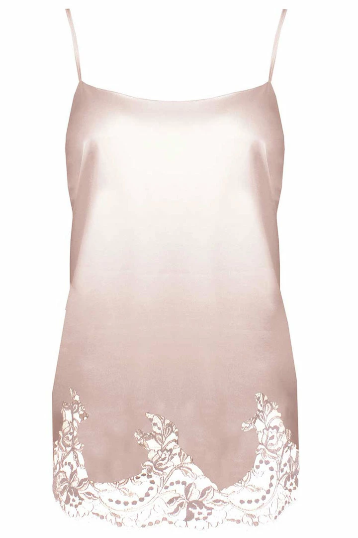 Romantic and luxurious, the beautiful Signature babydoll is crafted from pale pink silk satin and French lace. The timeless French lace is appliquéd onto the silk and the silk is cut away by hand. Give this luxurious piece as a gift to a lover or simply to yourself.
