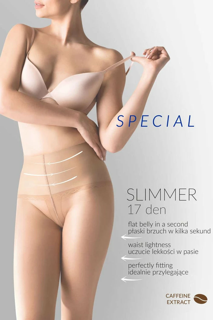 Gabriella’s secret shaper tights slim and flatter your belly in seconds. Made of Lycra yarn in a double braid they feature flat seams so you can wear them with your favourite LBD. The microcapsules contained in the yarn, under the influence of body heat, release caffeine, which penetrates into the skin, helping to reduce cellulite with wear.