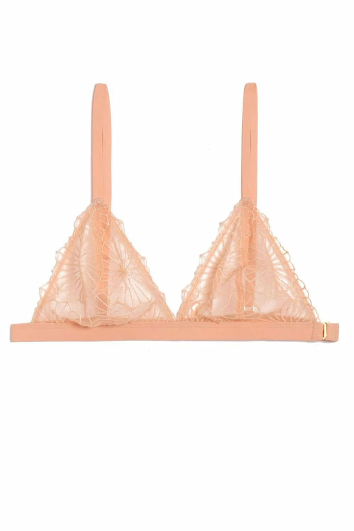 Nothing looks as alluring as French lingerie. The Susana triangle bra is a beautiful combination of transparent tulle and citrus fruit-shaped inspired embroidery. It’s free from padding and wires for a lightweight feel and natural cleavage.