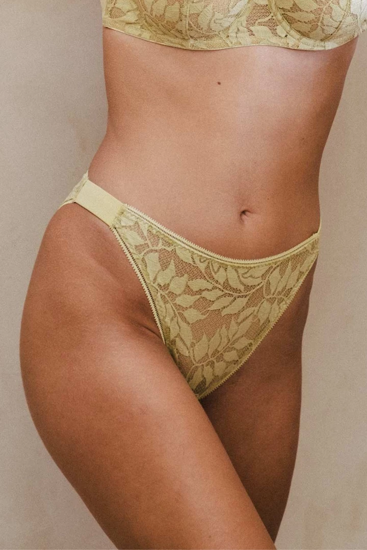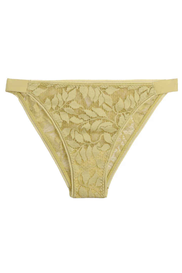The Gia brief literally sublimates your shape with its high waist. The colour of its floral lace, a vitaminized almond green, is right on trend for the season. A sunny and sophisticated creation.