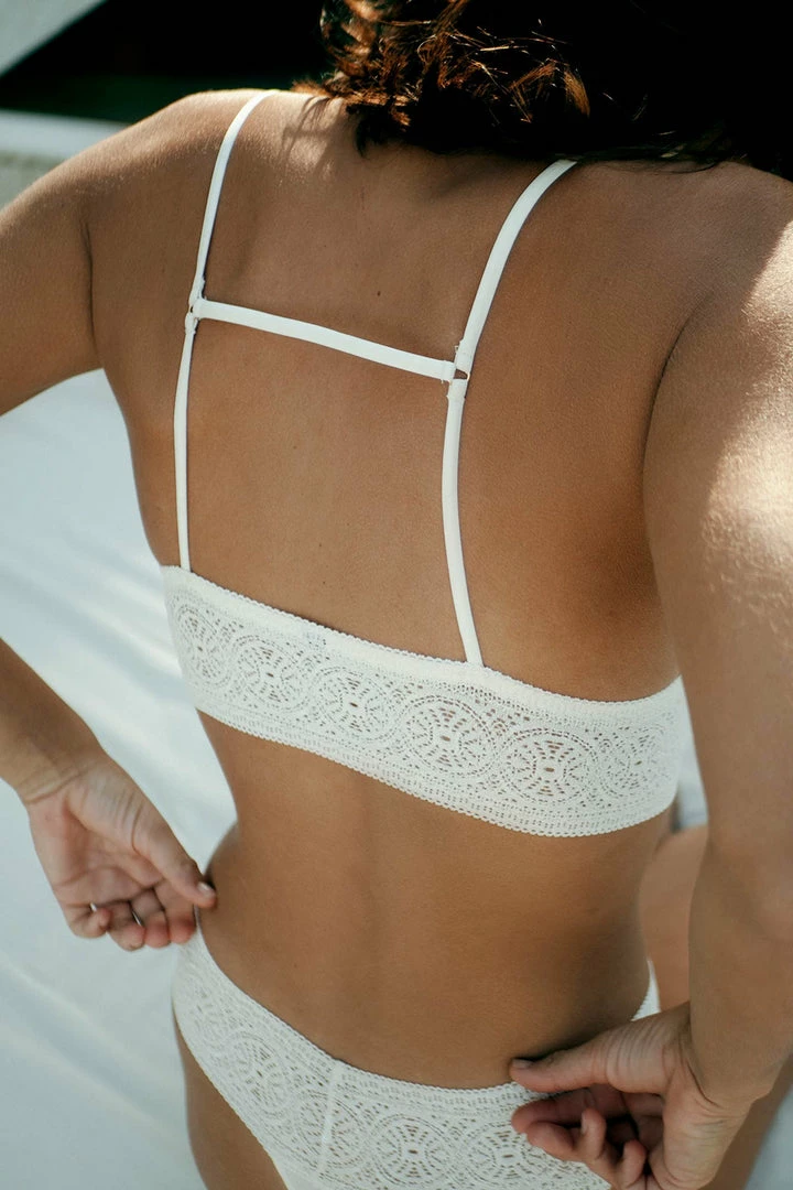 Luce is the ultimate summer bra, fully lined and can be worn as a top. Its thick lace texture does not mark the skin and ensures good support.