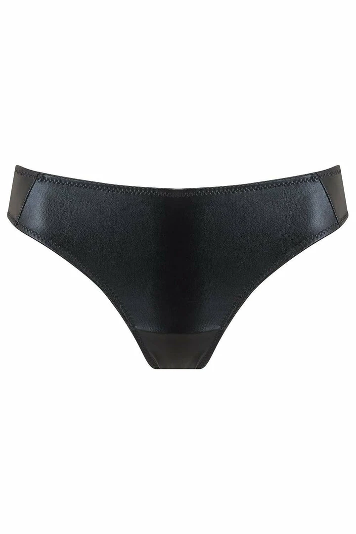 Turn up the heat in this audaciously-erotic thong, crafted from soft, faux leather. The slight sheen gives it a spicy ‘wet look’ appearance, and the sexy Brazilian thong shape curves up high over the hips to flaunt your figure. Best of all, this wet-look thong is just comfortable as your everyday favourites, meaning you can put it on in the morning as a cheeky surprise for later…