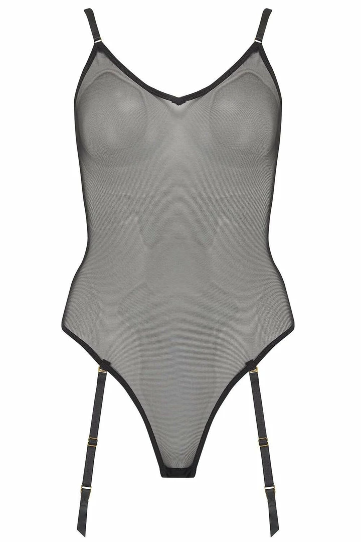 Discover sheer lingerie from Inamorata London by Naughty Knickers. Playfully sexy, this smoking hot body is crafted from an ultra-soft, teasingly sheer tulle fabric, leaving nothing to the imagination. It has a sexy thong back perfect for showing off the derriere. Cut high to elongate the legs & detachable suspenders which allows for multiple looks. Simplicity has never looked this sexy! Style with seamed stockings for a sensational look!