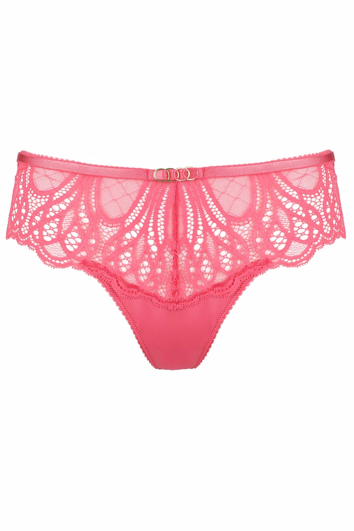 You’ll love this brazilian from the first wear! Crafted from sheer pink lace and soft microfibre the Angels brazilian brief will warm up your senses! With its unique style, tempting cut out and elegant edges to emphasise your curves, you’ll want to wear it all the time! Pair yourself with the matching Angels bras for a timelessly beautiful set.