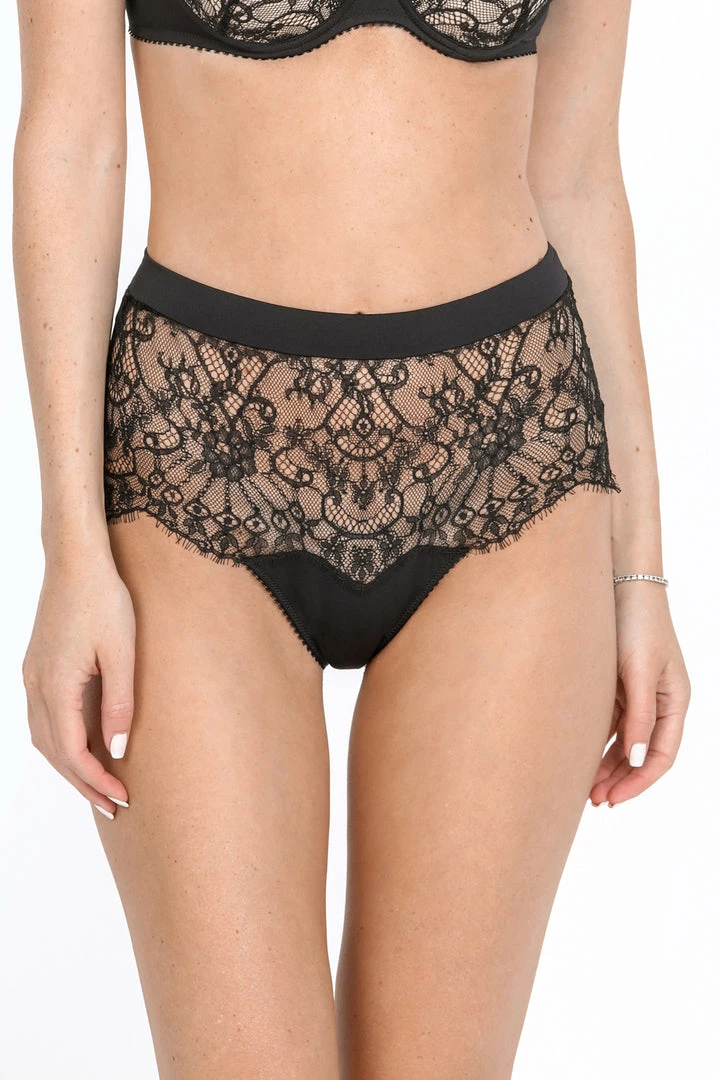 Have you been looking for something incredibly feminine and sexy? The Jolidon ‘French Connection’ Brazilian brief is just what you need! Sexy sheer lace and soft microfibre – this tempting piece will make you feel and look amazing. Brazilian cut shapes your derriere and the high rise waistband will flatter your curves to perfection. Pair yours with the matching padded bra or underwired bra or an irresistible black lingerie look.