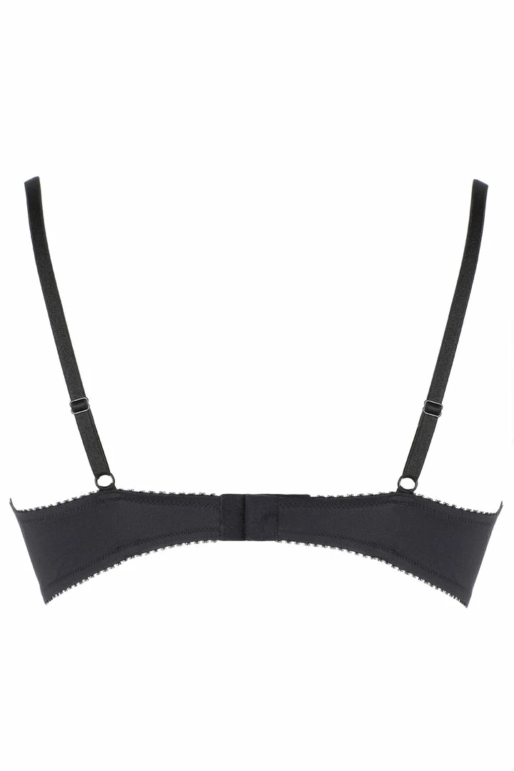 Jolidon’s ‘French Connection’ collection brings a hint of mystery and sophistication to feminine curves. Crafted from soft lace and smooth microfiber the underwired bra features soft, underwired cups to provide a very seductive yet reassuring cleavage. Get ready for a piquant atmosphere! Moments full of love and fun are coming!Pair yours with the matching French Connection brazilian brief or thong for a tempting black lingerie look.