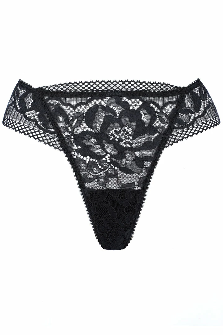 You’ve been looking for something sexy yet comfortable? Look no further than the Rock DJ thong! Made from floral lace, it features a classic thong cut to the back and wide sides to enhance the female silhouette. Complete the sexy black lingerie look with the matching Rock DJ push up bra and harness.