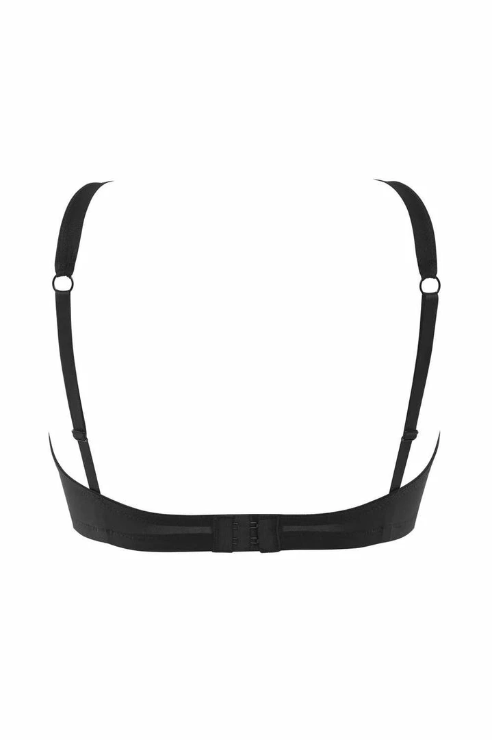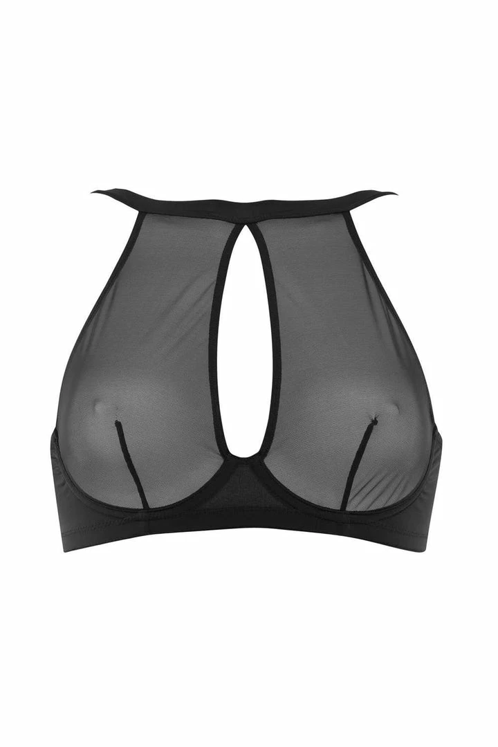 Sheer lingerie from Maison Close. Elegant and seductive the Pure Tentation Wire Bra is crafted from ultra-soft microfibre and sheer tulle in a deep black. Sex appeal and statement style come together in the Pure Tentation collection. This crop-top style bra is crafted with a high-necked silhouette, with smooth, sheer mesh cups. The continuous underwire is bound in black for a defined framing effect.