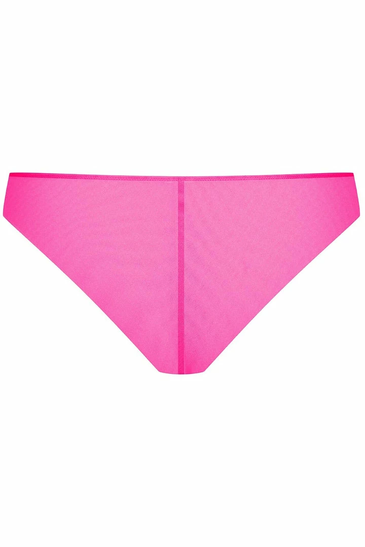 The Corps à Corps brief by Maison Close is one for fans of comfortable colourful lingerie. Made from a lightweight sheer tulle fabric in neon pink, these low-rise knickers provide a smooth look even under tight-fit clothing. Complete the look with the Corps à Corps underwired bra.