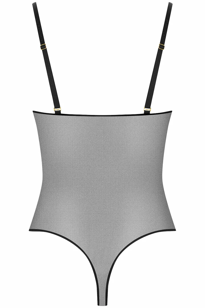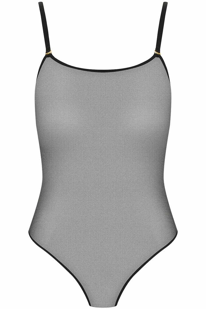 Maison Close’s Corps à Corps thong bodysuit is perfect as lingerie, or as outerwear styled under a blazer with jeans too. It’s crafted from satin tulle in black with gold hardware for a luxe touch. It features a square neckline, thong cut and adjustable and interchange shoulder straps.