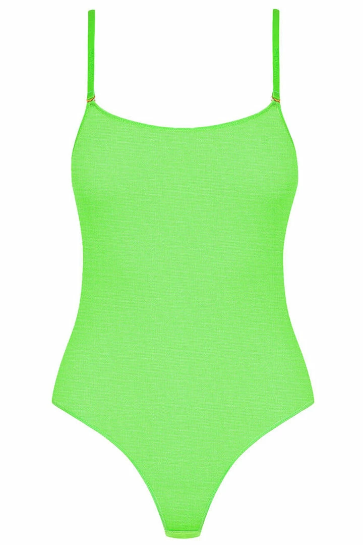 • Sexy sheer bodysuit in neon green.