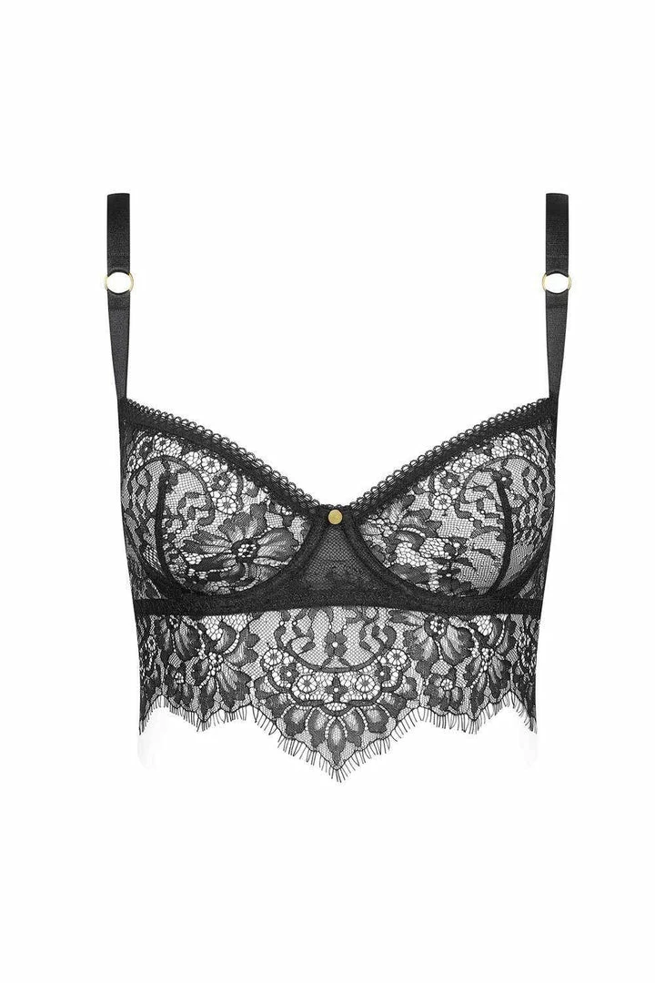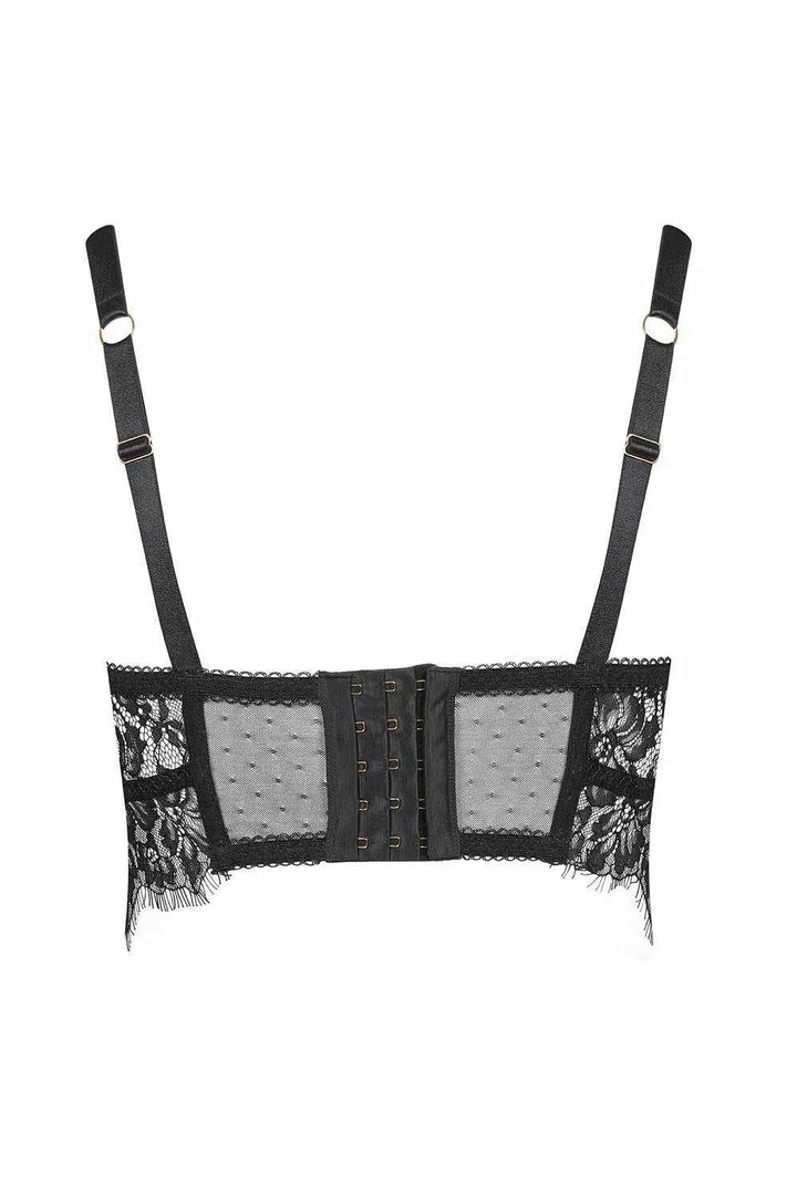 Sheer lingerie from Maison Close. Chic and sexy balcony bra from the Inspiration Divine collection. The bra is the perfect combination of delicate floral lace and dotted tulle making it an elegant yet seductive piece.
